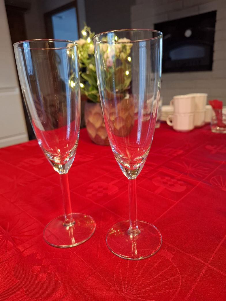 pullalautaset, kuohuviinilasit.